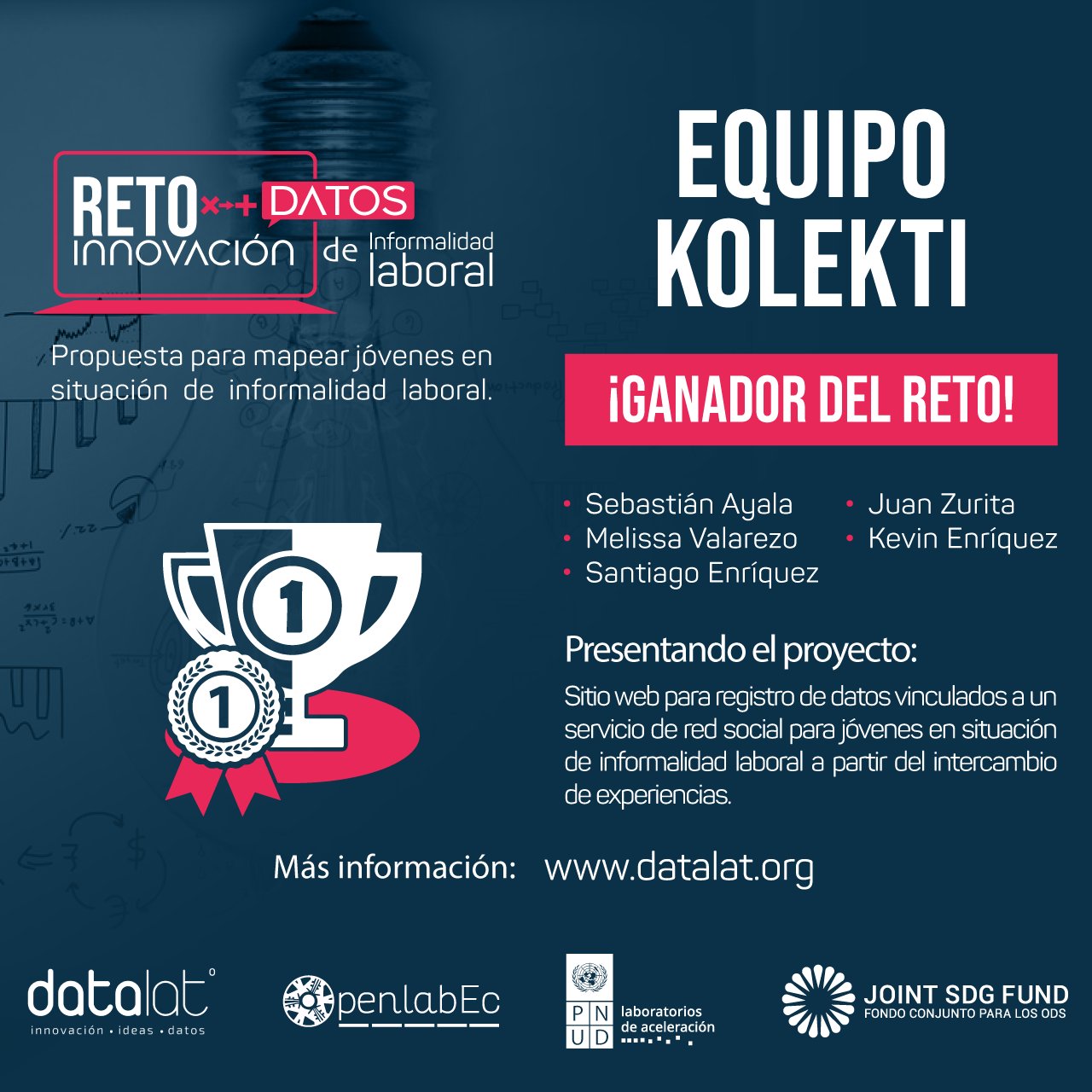 The Innovation challenge For more data on labor informality hackathon searched for a technological solution to collect labor informality data in Ecuador. In the first stage of this challenge, there were 39 proposals from 80 interdisciplinary teams.